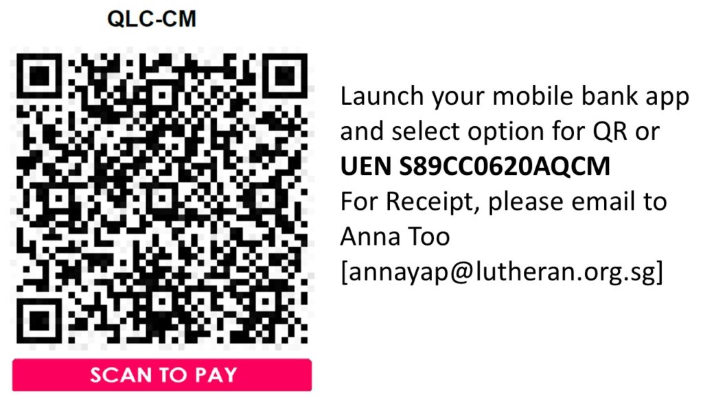 QLC has setup new PayNow facilities to make your tithing and offering easier. You can scan the below QR Code using your Bank’s mobile application.55